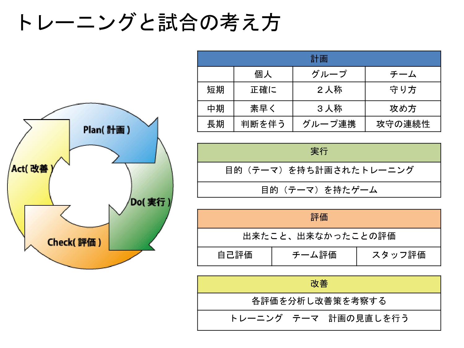 練習試合や公式戦を通してM-P-T-Mの原則に伴ったサッカー選手
