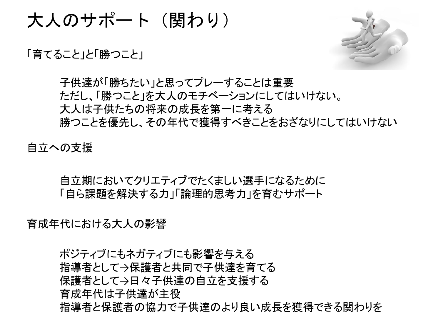 一貫指導を基に、長期的視野に立った選手の育成を行います。